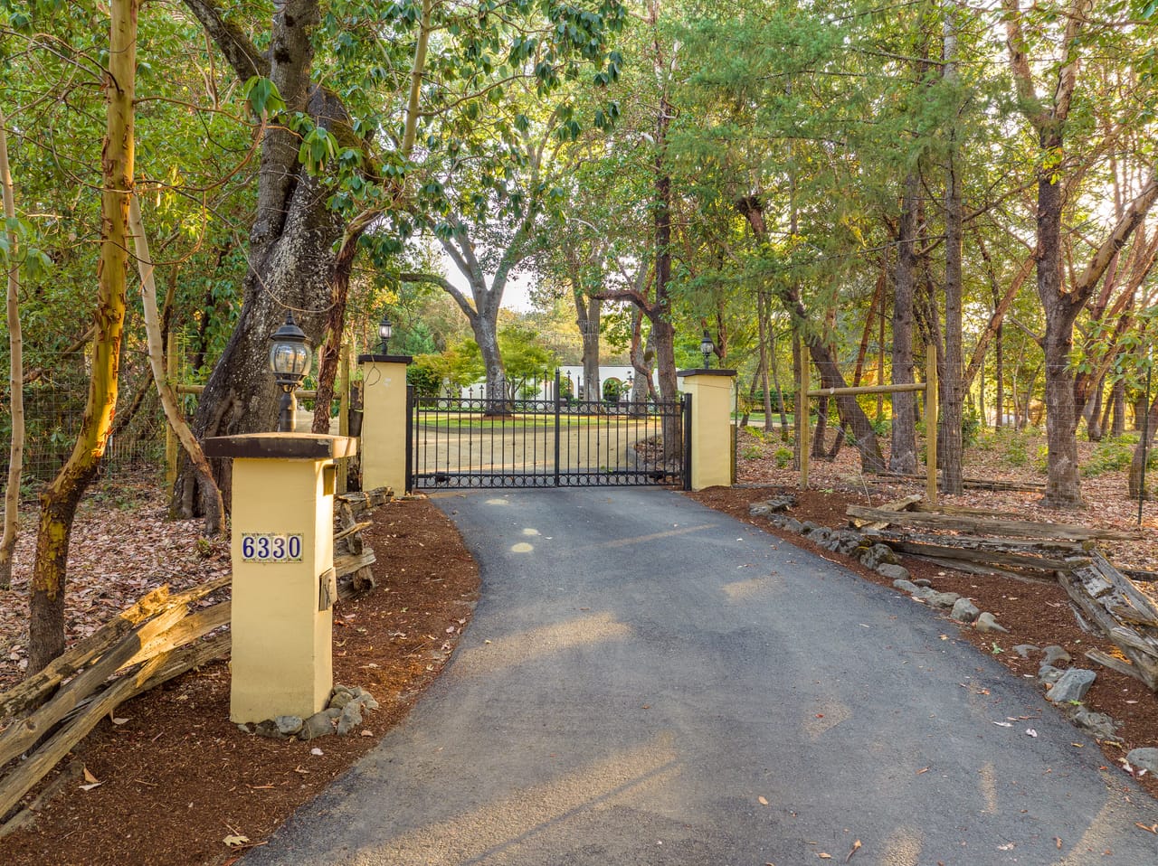 Luxury Home for Sale in Medford, Oregon. Welcome to Dark Hollow Estate. This secluded 8.55-acre estate features a mission-style home with three bedrooms, two baths, multiple living spaces, and a beautiful in-ground pool. A gated circle drive and beautiful curbed lawn area greet and lead guests to the home’s quintessential courtyard. The driveway then wraps around the house and leads to the detached garage as well as 4 additional outbuildings totaling over 6,000 sq. ft.