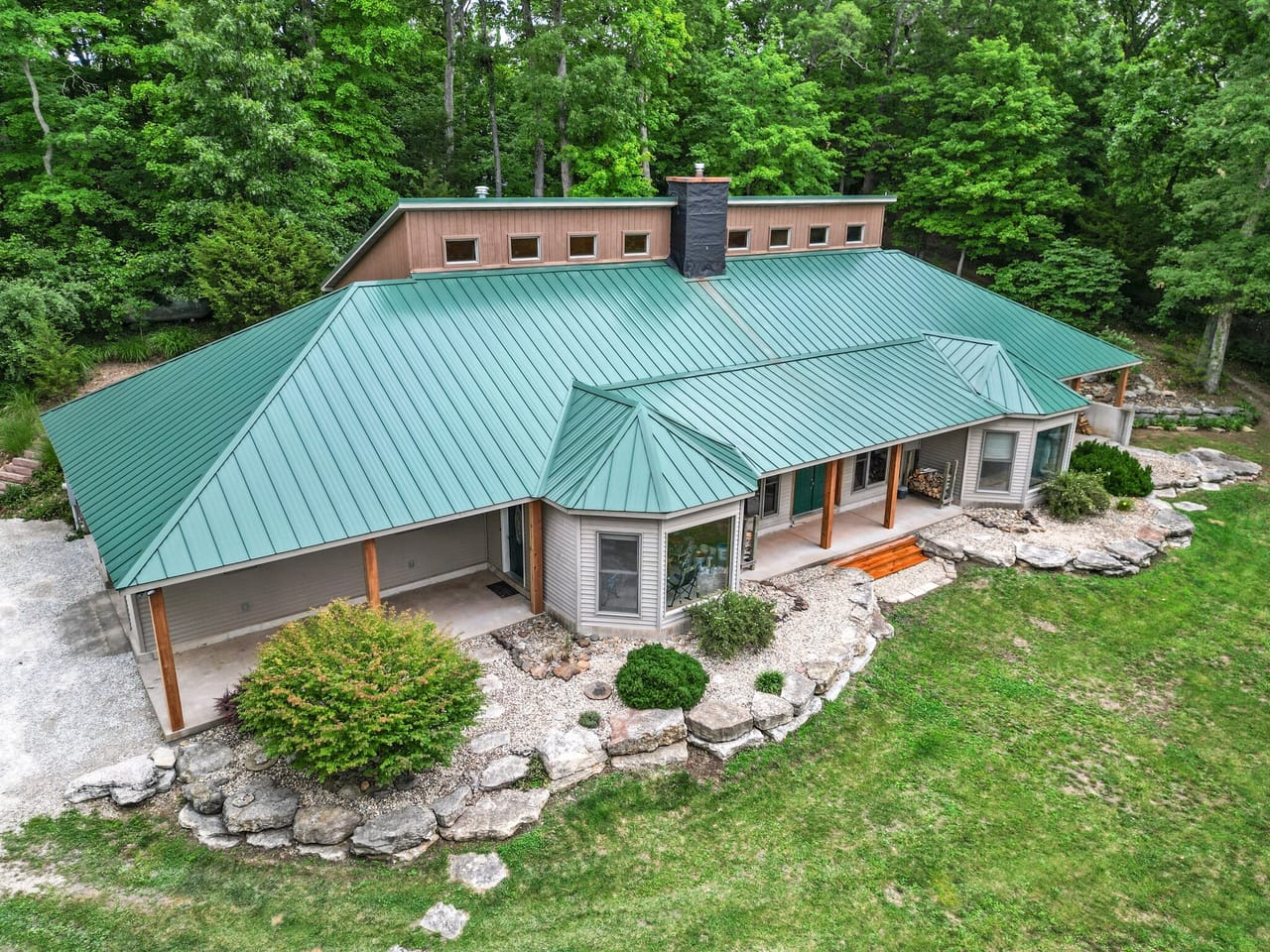 NO HOA, NO FEES, NO RESTRICTIONS, LOW TAXES! Store your boat, camper, etc. Welcome to this luxurious rustic estate offering unmatched privacy & breathtaking views. Nestled in nature, this stunning home features a charming front porch perfect for enjoying spectacular sunsets. The heart of the home is the impressive two-story Great Room w/soaring wood ceilings, exposed beams, stone fireplace, built-in bookshelves, a bar, ideal for entertaining. The gourmet kitchen boasts stainless steel appliances, two sinks, granite countertops & spacious breakfast room w/panoramic views. The main floor suite offers a sitting room, private patio ready for a hot tub, a walk-in shower, double vanities & walk-in closet w/washer & dryer. The upper level features 2 additional bedrooms, a loft, & second laundry space. Outdoors discover a bunkhouse, storage sheds & an ancillary building suitable for a fancy chicken coop or creative use. Experience the perfect blend of rustic charm and modern luxury.