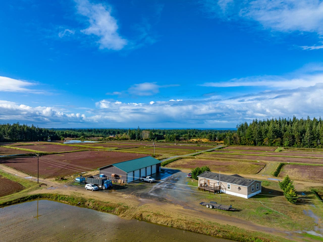 The Johnson Creek Farm is located just 4.5 miles south of Bandon. The farm is comprised of 62.95 gross acres across 2 tax lots. The land is mostly level and provides great utility, well-maintained roads, and a private setting. The farm includes 24.84 net acres of cranberries, spread over 22 bogs, producing DeMoranville, Welker, Stevens, Mullica Queen, and Hains varietals. The berries vary in year planted from 1998 to 2022.