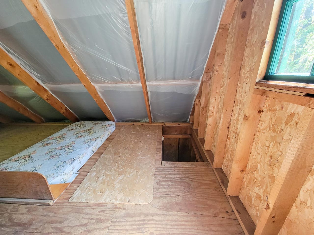 Great hunting camp or summer get-a-way on 30 +/- heavily wooded acres in the quiet town of Wolcott, VT. Accessed on a Class IV seasonal & unmaintained road, this simple off-grid camp comes furnished & features a propane range, propane lighting & a wood stove. There is a nice parking area for 3 - 4 cars off the road & a small bridge over a seasonal stream that leads to the cabin. A ladder from the first floor leads to a large, open loft area for sleeping. The cabin walls are not insulated but the second-floor ceiling is. There is about 1/3rd of an acre of cleared land around the camp; it is sloped but usable. There is no running water in the cabin. A traditional outhouse is nearby for nature's call. Used primarily for a white tail hunting camp by the sellers, there are some trails but the land is heavily wooded. Enjoy the front porch, walk the woods, hunt, shoot, hike & enjoy what Vermont has to offer. The sellers state the road is normally open until after hunting season & is used by snowmobilers in the winter as a cut through to main trails. Power is over 4000' away on the small Class III section of Turcotte Road. The property is being sold as a seasonal camp only, not a residence. There is no power, water or septic, and the camp is uninsulated & built on wood block piers. Land enrolled in the Current Use tax reduction program with 2 acres left out around the cabin. The road is rough but drivable by truck; this is last camp on the road. 4-wheel drive suggested for access. See the Forest Management Plan for more details about the woodland.